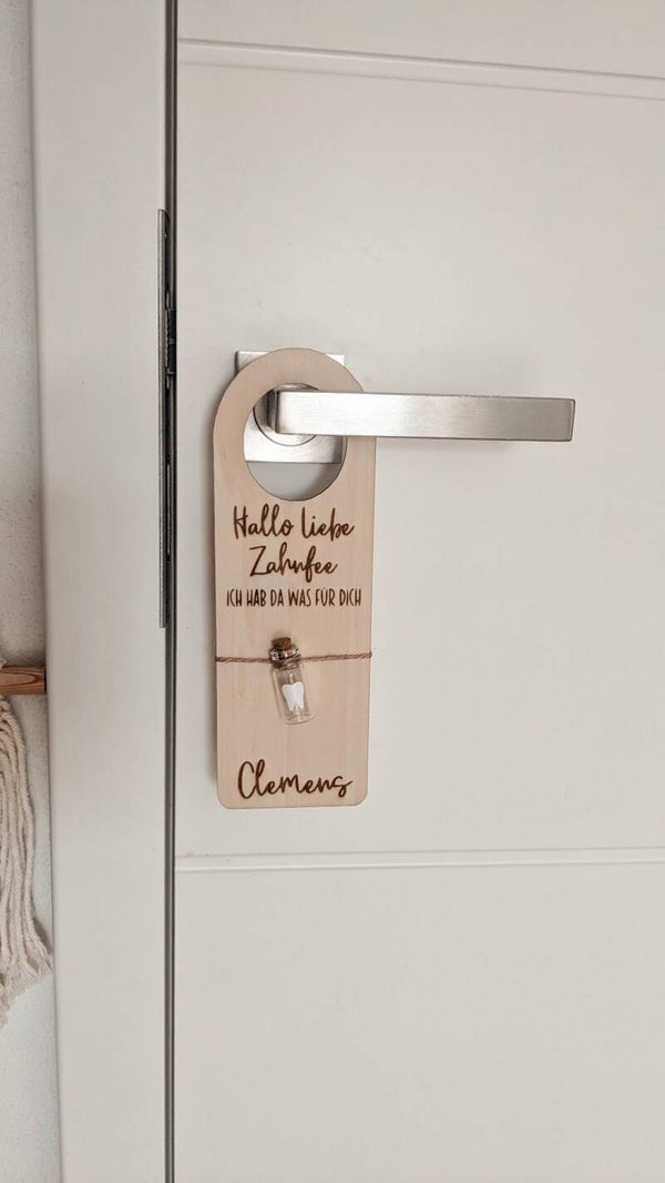 Verwandle den ersten verlorenen Milchzahn deines Kindes in ein unvergessliches Erlebnis mit unserem personalisierbaren Zahnfee-Türschild aus Holz. Dieses handgefertigte Schild ist nicht nur ein dekoratives Highlight im Kinderzimmer, sondern auch ein praktischer Aufbewahrungsort für den Zahn und eine kleine Überraschung von der Zahnfee.