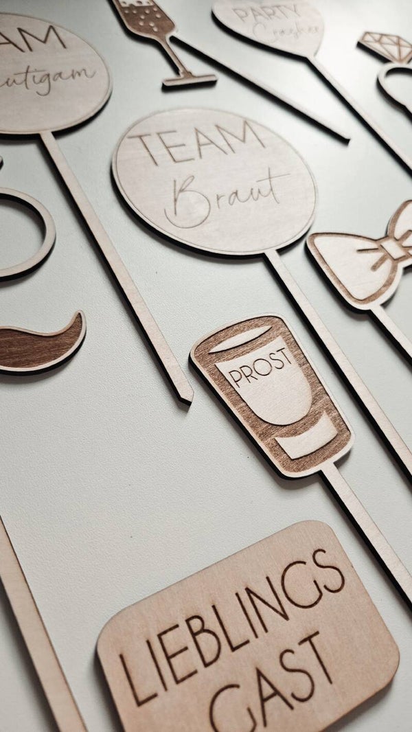 Fotobox Accessoires aus Holz – Perfekt für Hochzeit, JGA & Party
